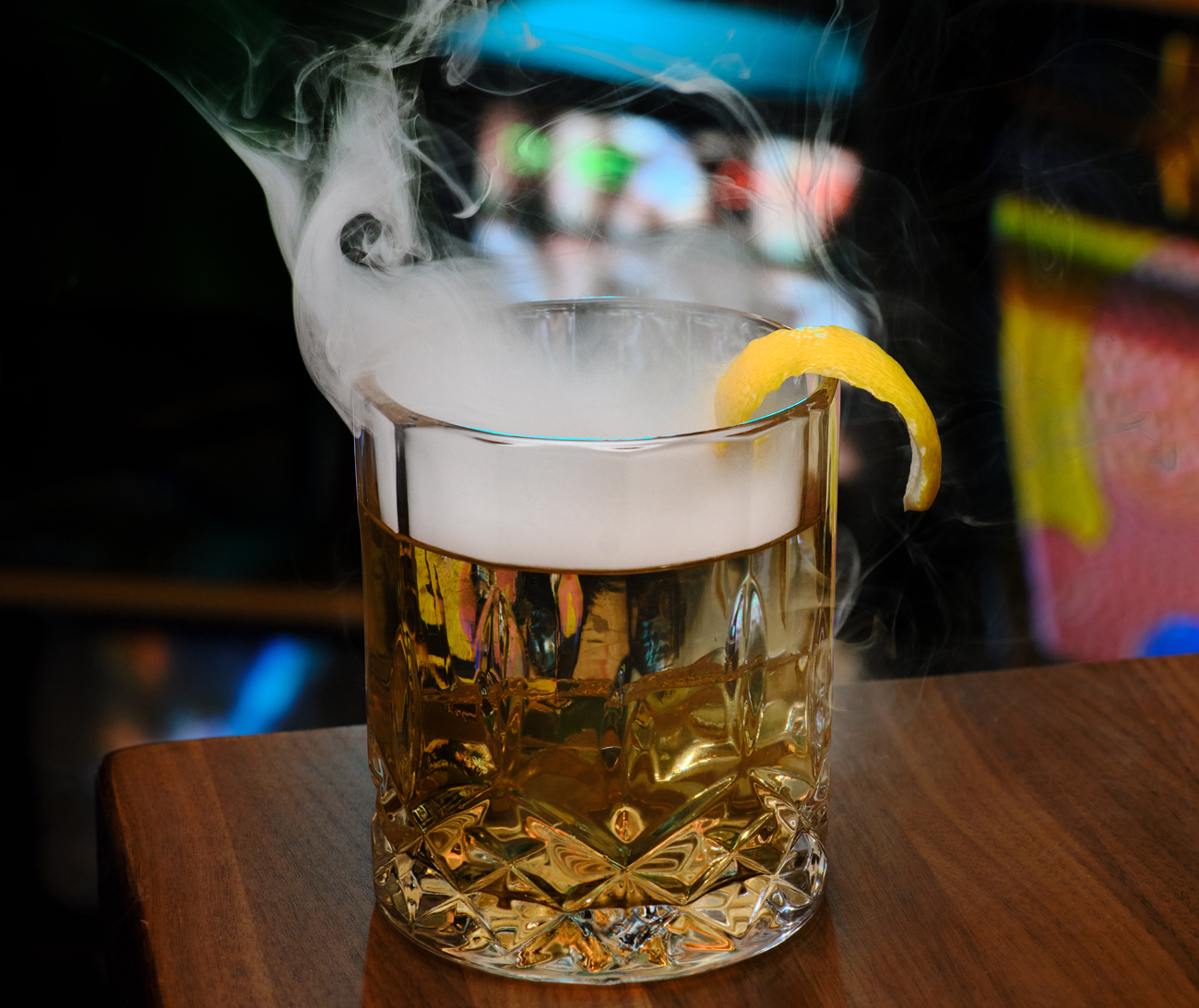 Fat-washed (Wagyu Beef Tallow) Suntory Toki Whiskey, Genepy, Yuzu Bitters, Sage Smoke